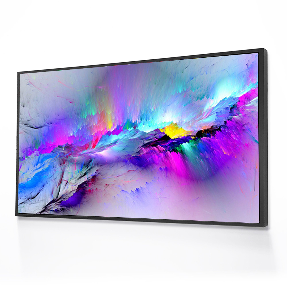 All of our products are stretched over a Pinewood bracing frame, and then a 3 cm black floating frame is attached with all hanging hardware is installed, Its ready to hang