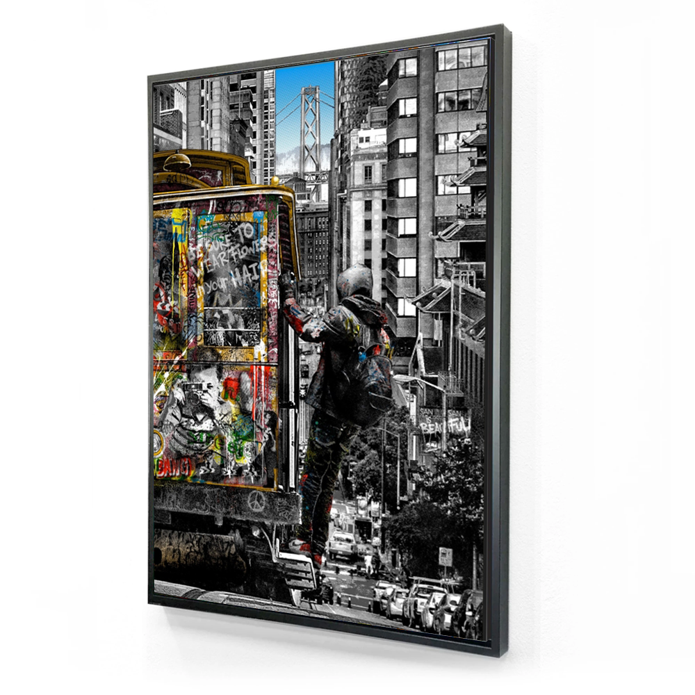 All of our products are stretched over a Pinewood bracing frame, and then a 3 cm black floating frame is attached with all hanging hardware is installed, Its ready to hang