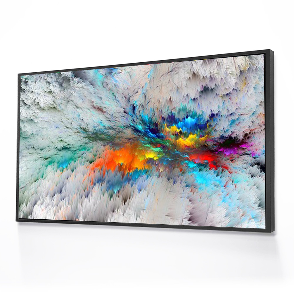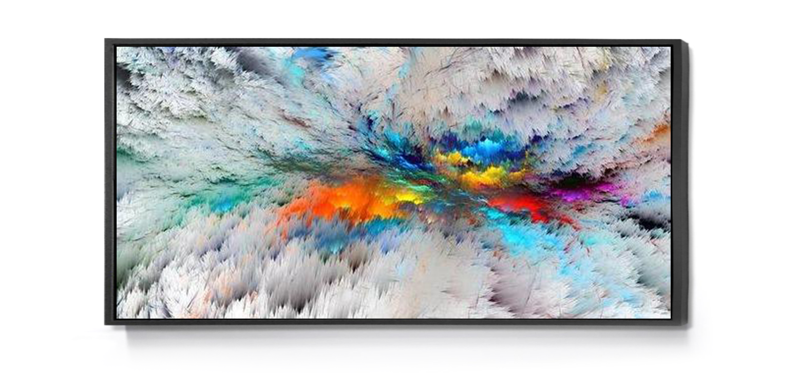 All of our products are stretched over a Pinewood bracing frame, and then a 3 cm black floating frame is attached with all hanging hardware is installed, Its ready to hang